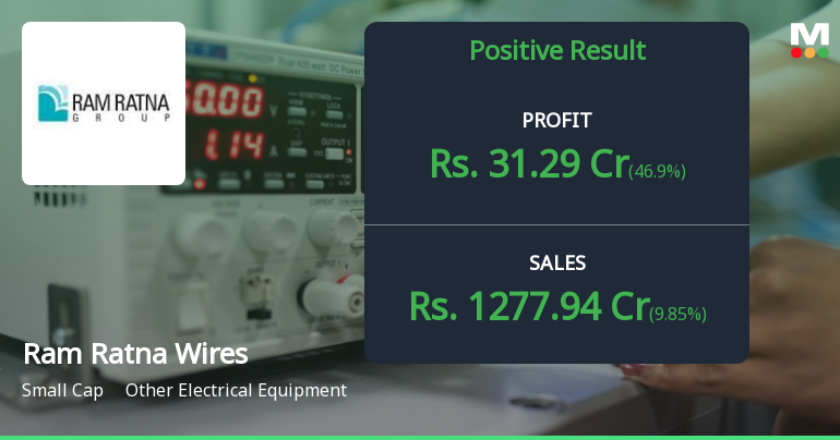 2026-02-06 21:01:20Ram Ratna Wires Ltd., a small-cap manufacturer of enamelled copper winding wires, reported consolidated net profit of ₹21.30 crores for Q3 FY26 (September 2025 quarter), marking a robust 37.77% quarter-on-quarter increase from ₹15.46 crores in Q2 FY26, though up a more modest 26.56% year-on-year. The ₹2,791 crore market-cap company delivered net sales of ₹1,163.39 crores during the quarter, representing an 18.41% sequential jump and a 23.79% year-on-year surge, reflecting strong demand momentum in the electrical equipment sector.