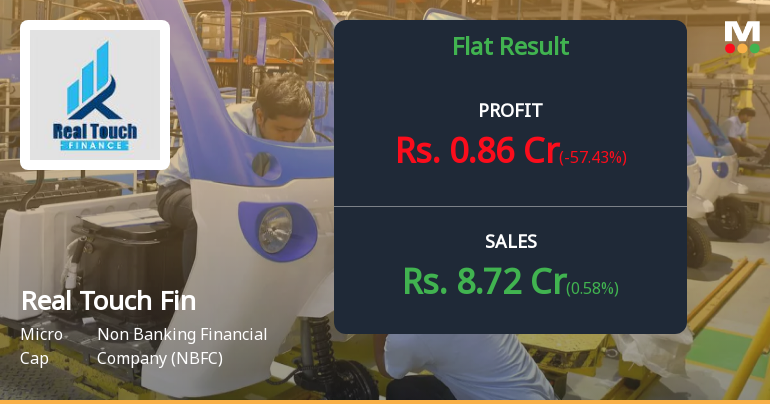 "description": "Real Touch Finance Ltd.'s latest financial results for Q3 FY26 reveal a complex picture characterized by significant revenue growth juxtaposed with a sharp decline in profitability. The company reported net sales of ₹8.72 crores, reflecting a quarter-on-quarter growth of 0.58% and a year-on-year increase of 14.89%. This marks the highest quarterly revenue in the company's recent history, indicating a sustained top-line momentum over seven consecutive quarters.\n\nHowever, the net profit for the same quarter plummeted to ₹0.86 crores, representing a dramatic 57.43% decrease from the previous quarter and a 50% decline year-on-year. This stark contrast between revenue growth and profit deterioration raises concerns about the sustainability of earnings and operational efficiency. The profit volatility observed in recent quarters—swinging from ₹0.68 crores in Q4 FY25 to ₹2.02 crores in Q2 FY26, and then back down ..."