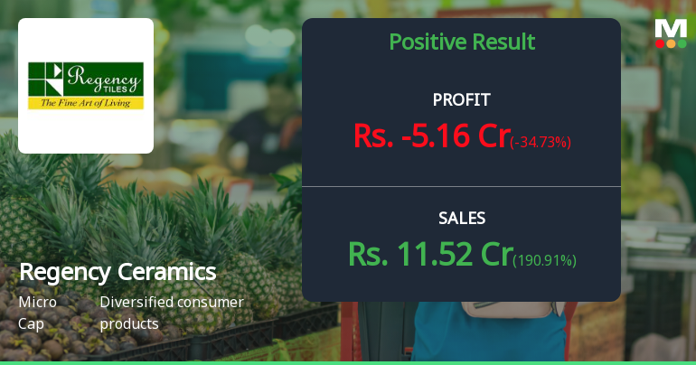 2026-02-13 19:42:16Regency Ceramics Ltd's latest financial results for the quarter ended December 2025 reveal a complex situation characterized by significant revenue growth but ongoing operational challenges. The company reported net sales of ₹11.52 crores, reflecting a year-on-year growth of 190.91%, which is a notable achievement compared to the previous year's performance. However, this revenue growth has not translated into profitability, as the operating margin (excluding other income) remained deeply negative at -36.72%. The net loss for the quarter was ₹5.16 crores, which represents a deterioration compared to the previous quarter. This marks a continuation of the company's struggle to achieve operational efficiency, as indicated by the persistent negative margins. The profit before tax also worsened from the prior quarter, highlighting the challenges in converting sales into profit. Despite the substantial increas...