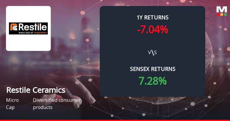 2026-01-19 10:10:18Restile Ceramics Ltd is rated Strong Sell by MarketsMOJO, with this rating last updated on 24 Nov 2025. However, the analysis and financial metrics discussed here reflect the stock's current position as of 19 January 2026, providing investors with an up-to-date view of the company's fundamentals, valuation, financial trends, and technical outlook.