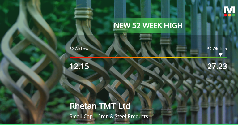 2026-01-22 11:09:49Rhetan TMT Ltd, a key player in the Iron & Steel Products sector, reached a fresh 52-week high of Rs.27.5 today, marking a significant milestone in its stock performance. This new peak reflects sustained momentum driven by consistent gains over recent sessions and favourable technical indicators.