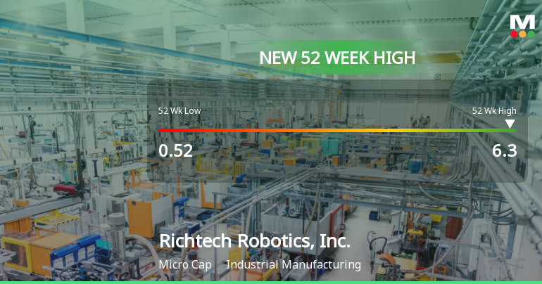 2025-10-06 17:46:28Richtech Robotics, Inc. has achieved a new 52-week high of USD 6.29, reflecting a significant increase in its stock price over the past year. With a market capitalization of USD 447 million, the company faces challenges, including a negative return on equity and a high price-to-book ratio, while demonstrating growth potential in the industrial manufacturing sector.