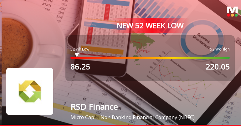 RSD Finance’s share price has been under pressure for the past two days, cumulatively falling by 8.13%. Despite opening the day with a positive gap of 4.07%, the stock failed to sustain gains and touched an intraday low of ₹86.25, marking a fresh 52-week low. The wide intraday trading range of ₹13.65 and an intraday volatility of 7.33% underscore the heightened uncertainty and selling pressure among investors. Notably, the weighted average price indicates that a larger volume of shares traded closer to the day’s low, signalling stronger bearish sentiment throughout the session.