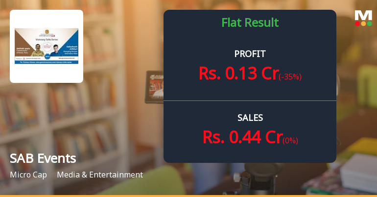 SAB Events & Governance Now Media Ltd., a micro-cap digital media and MICE company with a market capitalisation of ₹14.56 crores, reported a net loss of ₹0.14 crores for Q2 FY26, representing a 36.36% improvement from the previous quarter's loss of ₹0.24 crores. Despite the sequential improvement, the company's year-on-year comparison showed a 36.36% deterioration from the ₹0.22 crore loss in Q2 FY25, highlighting persistent operational challenges in the media and entertainment sector.