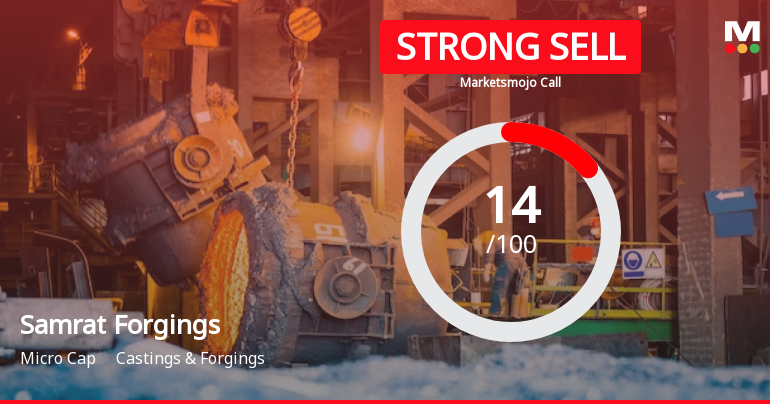 2026-03-03 10:10:13Samrat Forgings Ltd is rated 'Strong Sell' by MarketsMOJO, with this rating last updated on 21 July 2025. However, the analysis and financial metrics discussed here reflect the stock’s current position as of 03 March 2026, providing investors with an up-to-date view of the company’s performance and outlook.