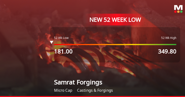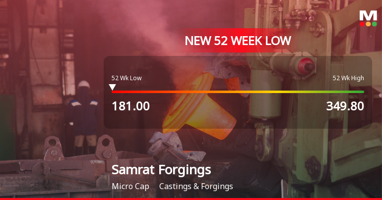 Samrat Forgings Ltd Falls to 52-Week Low of Rs.181 Amidst Weak Fundamentals
