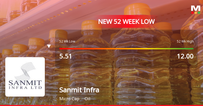 Sanmit Infra Ltd Falls to 52-Week Low of Rs 5.2 as Sell-Off Deepens