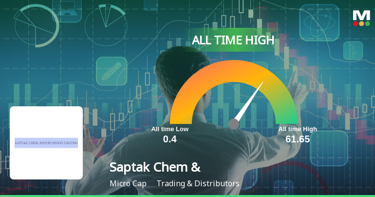2026-02-19 10:48:29Saptak Chem & Business Ltd has reached a significant milestone by hitting a new 52-week and all-time high of Rs.61.65, marking a remarkable surge in its stock price and reflecting sustained momentum over the past several weeks.