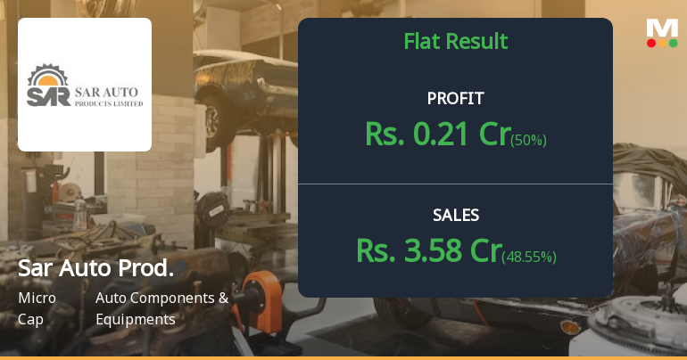 2026-02-10 19:33:02The latest financial results for Sar Auto Products Ltd indicate a company navigating significant operational challenges. In the quarter ended December 2025 (Q3 FY26), Sar Auto Products reported net sales of ₹3.58 crores, reflecting a sequential growth of 48.55% from ₹2.41 crores in the previous quarter. However, this figure is only marginally above the ₹3.52 crores recorded in the same quarter of the previous year, highlighting a year-on-year revenue growth of just 1.70%. This suggests that while there was a notable sequential recovery, the company struggles to regain its previous revenue levels. Net profit for Q3 FY26 was ₹0.21 crores, which is a 50.00% increase from ₹0.14 crores in Q2 FY26. This sequential improvement in profitability is a positive sign, yet the overall profitability metrics remain concerning. The profit after tax (PAT) margin stood at 5.87%, showing a slight increase from 5.81% in the p...