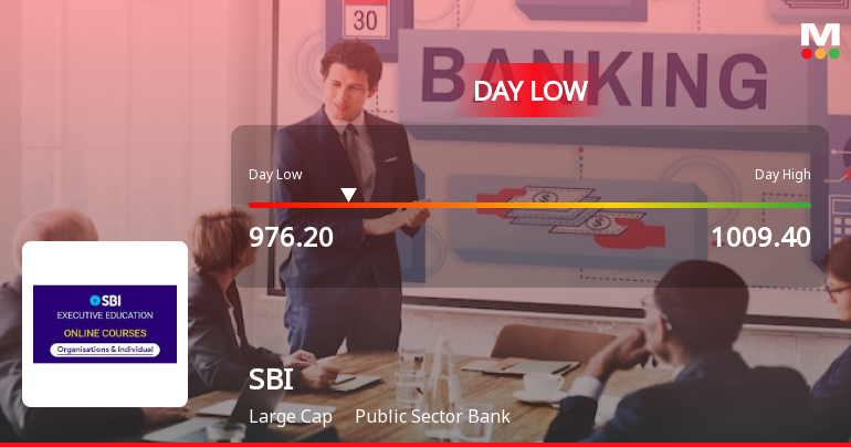 2026-03-30 14:51:34State Bank of India (SBI) experienced a notable decline today, touching an intraday low of Rs 982.65, reflecting a 3.67% drop as the stock faced sustained selling pressure amid broader market weakness and sectoral underperformance.