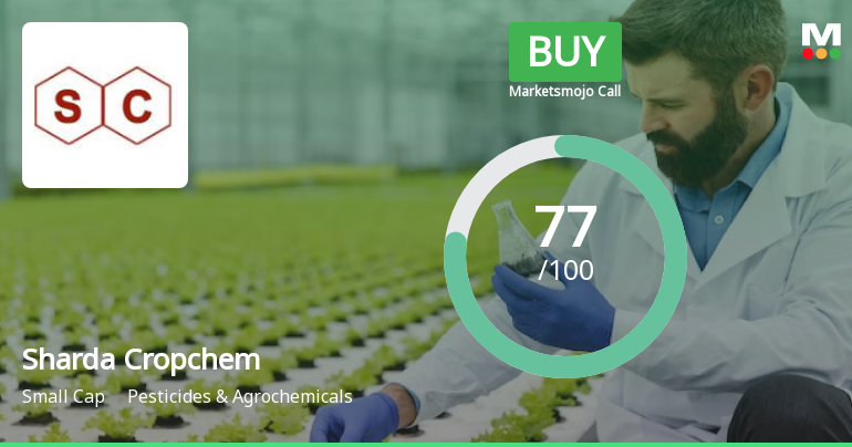 2026-03-06 10:11:01Sharda Cropchem Ltd is rated Strong Buy by MarketsMOJO, with this rating last updated on 29 January 2026. However, the analysis and financial metrics discussed here reflect the company’s current position as of 06 March 2026, providing investors with the latest insights into its performance and outlook.