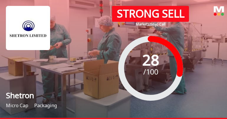 2026-03-15 10:10:32Shetron Ltd is rated Strong Sell by MarketsMOJO, with this rating last updated on 23 February 2026. However, the analysis and financial metrics discussed below reflect the stock's current position as of 15 March 2026, providing investors with the latest insights into the company’s performance and outlook.