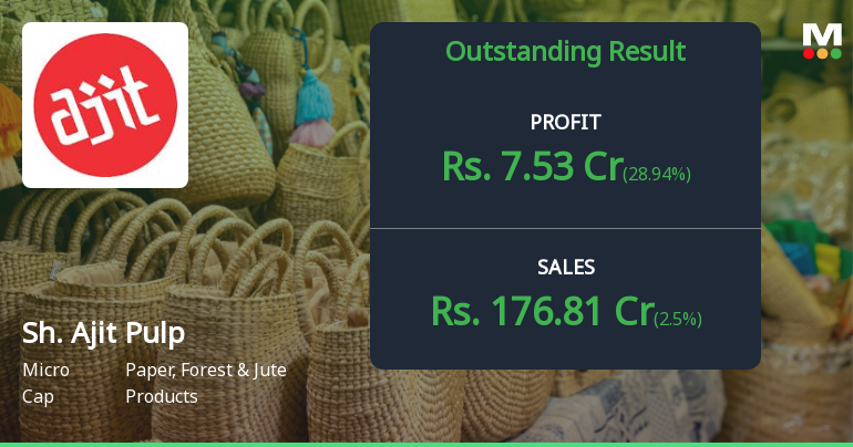 2026-02-09 16:30:39Shree Ajit Pulp and Paper Ltd., a Gujarat-based manufacturer of multilayer testliner and testliner paper, has delivered an exceptional third-quarter performance for FY2026, with net profit surging 304.84% year-on-year to ₹7.53 crores. The micro-cap company, with a market capitalisation of ₹207.00 crores, posted quarterly revenue of ₹176.81 crores, marking a robust 46.43% YoY growth and 2.50% sequential improvement from Q2 FY26.
