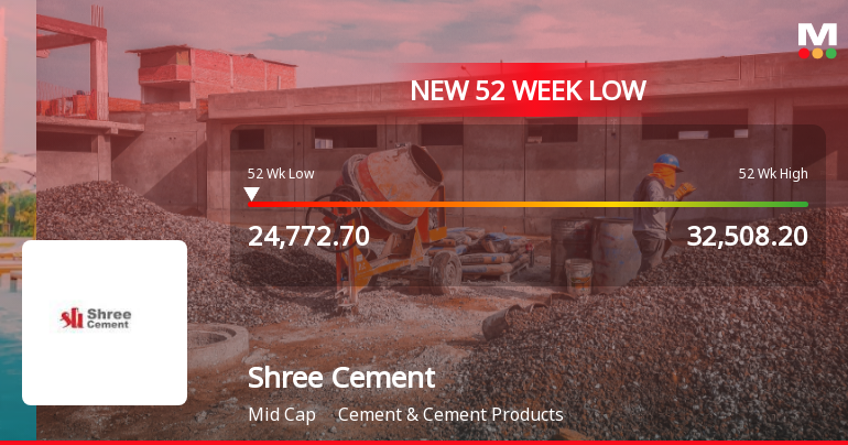 2026-03-04 12:42:02Shree Cement Ltd. has touched a new 52-week low today, with its stock price declining to Rs. 24,995.4. This marks a significant drop amid broader sectoral and market movements, reflecting a challenging period for the company within the Cement & Cement Products industry.