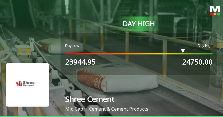 2026-04-08 10:46:22The Sensex advanced 3.72% on 8 Apr 2026, yet Shree Cement Ltd. outpaced the benchmark with a 5.48% gain, touching an intraday high of Rs 24,750. This 1.76-percentage-point outperformance against the broader market signals a stock-specific momentum shift rather than a mere market tailwind.