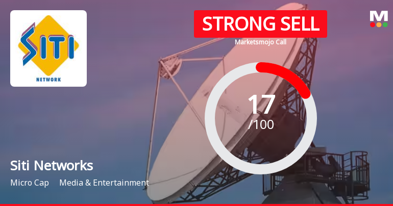 2026-04-03 10:10:14Siti Networks Ltd is rated Strong Sell by MarketsMOJO, with this rating last updated on 18 Sep 2024. However, the analysis and financial metrics presented here reflect the stock's current position as of 03 April 2026, providing investors with an up-to-date view of the company’s fundamentals, valuation, financial trends, and technical outlook.