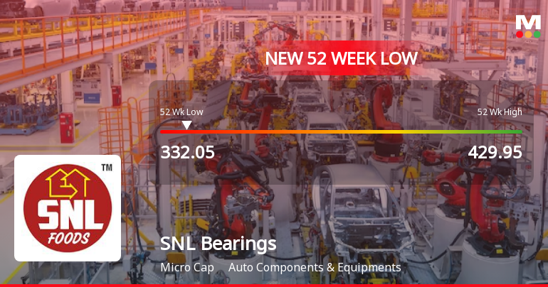 The stock hit a new 52-week low of ₹332.05 during intraday trading, marking a 7.35% fall from previous levels. This decline outpaced the bearings sector, which itself fell by 3.01% on the same day. SNL Bearings underperformed its sector by 2.4%, signalling investor caution. The weighted average price for the day was closer to the low end, indicating selling pressure throughout the session. Furthermore, the stock is trading below all key moving averages—5-day, 20-day, 50-day, 100-day, and 200-day—highlighting a bearish technical trend.