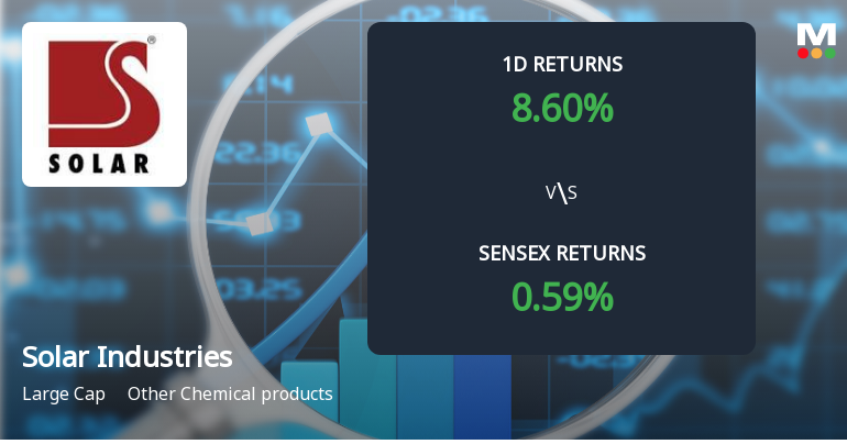 The stock’s upward trajectory is evident from its recent returns, which have substantially outperformed the broader market indices. Over the past week, Solar Industries India Ltd has gained 11.20%, compared to a modest 0.53% rise in the Sensex. This outperformance extends over longer periods as well, with a one-month gain of 12.17% against the Sensex’s decline of 3.17%, and a year-to-date increase of 13.69% while the benchmark fell by 3.37%. Over the last year, the stock has delivered an impressive 50.62% return, far surpassing the Sensex’s 8.49%. Even over three and five years, the company has generated returns of 239.23% and 1081.23% respectively, dwarfing the Sensex’s 38.79% and 75.67% gains. This consistent outperfo...