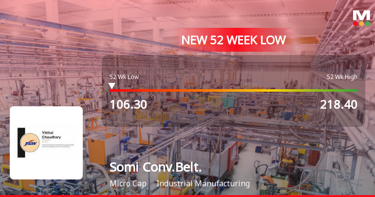 2026-01-21 11:51:00Somi Conveyor Beltings Ltd, a key player in the Industrial Manufacturing sector, has touched a new 52-week low of Rs.107.15 today, marking a significant decline amid broader market pressures and company-specific performance trends.
