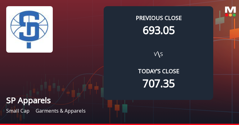 SP Apparels Ltd. demonstrated a robust intraday performance on 9 Mar 2026, surging to an intraday high of Rs 750, marking a significant 9.95% gain despite a challenging broader market environment.