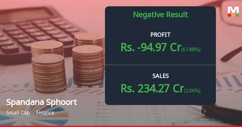 2026-01-27 18:35:05Spandana Sphoorty Financial Ltd., the microfinance institution grappling with severe operational challenges, reported a consolidated net loss of ₹94.97 crores for Q3 FY26, marking the sixth consecutive quarter of losses. Whilst the company showed marginal sequential improvement with losses narrowing by 61.88% from the previous quarter's ₹249.13 crores, the year-on-year comparison paints a grimmer picture—losses deepened by 78.43% compared to Q3 FY25. The stock has responded negatively to the prolonged distress, declining 23.47% over the past year and trading at ₹236.05 with a market capitalisation of ₹1,667 crores.