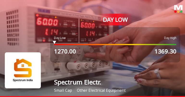 2026-02-25 15:17:07Spectrum Electrical Industries Ltd experienced a notable intraday decline on 25 Feb 2026, with its stock price touching a low of Rs 1240.15, marking an 11.18% drop. This downturn reflects immediate selling pressure despite a broadly stable market environment, as the stock underperformed its sector and the benchmark Sensex.