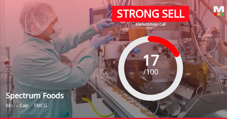 2026-02-19 10:10:50Spectrum Foods Ltd is rated Strong Sell by MarketsMOJO, with this rating last updated on 19 May 2025. However, the analysis and financial metrics discussed here reflect the stock’s current position as of 19 February 2026, providing investors with an up-to-date view of the company’s fundamentals, valuation, financial trends, and technical outlook.
