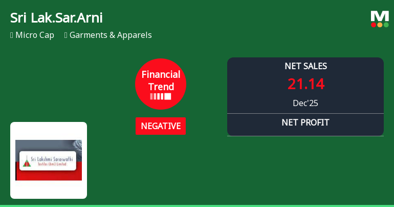 2026-02-12 19:35:11The latest financial results for Sri Lakshmi Saraswathi Textiles (Arni) Ltd for the quarter ending December 2025 reveal significant operational challenges and ongoing financial distress. The company reported net sales of ₹21.14 crores, reflecting a quarter-on-quarter decline of 9.66% and a year-on-year contraction of 20.65%. This marks the lowest quarterly revenue since June 2024, indicating persistent demand weakness and operational inefficiencies. The net loss for the quarter was ₹4.88 crores, which represents a substantial quarter-on-quarter decline of 47.88% compared to the previous quarter. The operating margin stood at -13.67%, the worst performance in five quarters, highlighting the company’s struggle to manage costs effectively amidst declining revenues. This negative operating margin has now persisted for eight consecutive quarters, underscoring deep-rooted structural issues within the business. ...