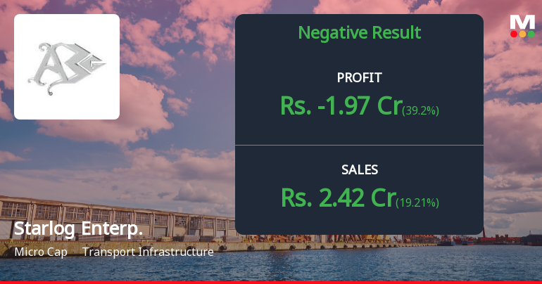 2026-01-28 19:02:04Starlog Enterprises Ltd., a micro-cap transport infrastructure company with a market capitalisation of ₹59.00 crores, reported deeply troubling Q2 FY26 results that underscore severe operational distress. The company posted a consolidated net loss of ₹3.24 crores for the quarter ended September 2025, marking a 113.40% decline from the ₹24.18 crores profit recorded in Q2 FY25. Revenue collapsed by 39.58% year-on-year to ₹2.03 crores, whilst operating margins plunged into negative territory at -94.09%.