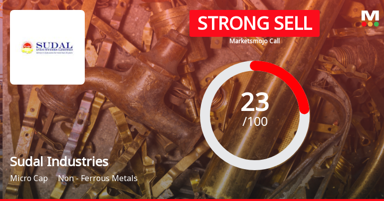 2026-01-20 08:03:06Sudal Industries Ltd, a key player in the Non-Ferrous Metals sector, has seen its investment rating downgraded from Sell to Strong Sell as of 19 Jan 2026. This shift reflects deteriorating technical indicators, flat recent financial performance, and heightened risks from promoter share pledging, despite the company’s attractive long-term growth metrics and valuation.