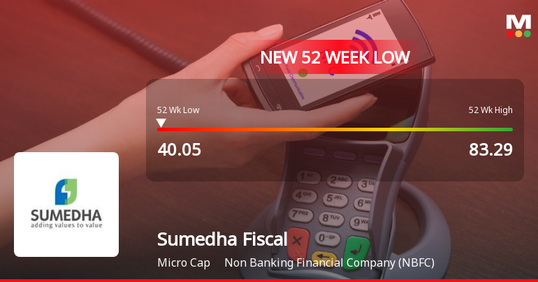 2026-01-28 09:46:26Sumedha Fiscal Services Ltd, a Non Banking Financial Company (NBFC), recorded a fresh 52-week low of Rs.40.05 today, marking a significant decline amid broader market gains. The stock has underperformed its sector and benchmark indices, reflecting ongoing pressures on its financial performance and valuation metrics.