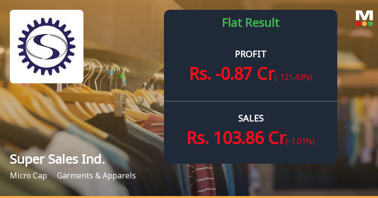 2026-01-30 17:47:29Super Sales India Ltd., a Coimbatore-based garments and apparels manufacturer, reported a net loss of ₹0.87 crores in Q3 FY26, marking a sharp deterioration from the ₹4.06 crores profit recorded in Q2 FY26. The company, with a market capitalisation of ₹186.00 crores, has seen its stock price plummet 42.48% over the past year, currently trading at ₹581.50 after a 3.75% decline on January 30, 2026. The quarter's dismal performance was characterised by a complete collapse in operating margins and mounting operational challenges.