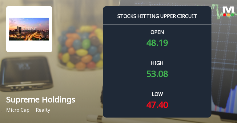 At Rs 53.85, the buying was done — not because demand dried up, but because the exchange wouldn't let the stock go any higher. Supreme Holdings & Hospitality Ltd locked at its upper circuit of 20% on 1 Apr 2026, with buyers queuing and no sellers willing to part with shares.