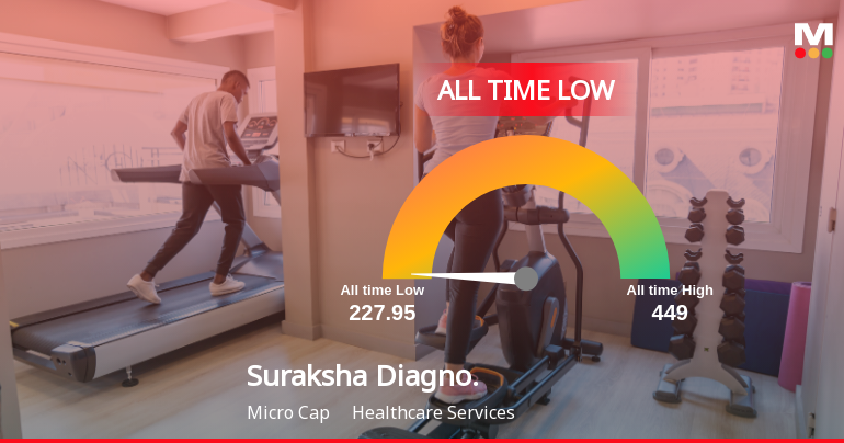 Suraksha Diagnostic Ltd, a player in the healthcare services sector, has reached a new all-time low price of Rs. 227.95, marking a significant decline amid a period of sustained underperformance relative to the broader market and its sector peers.