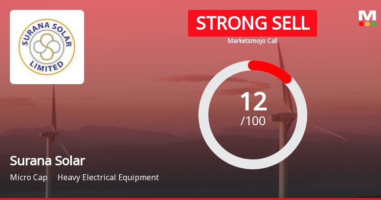 2026-02-09 10:10:30Surana Solar Ltd is rated Strong Sell by MarketsMOJO, with this rating last updated on 11 February 2025. However, the analysis and financial metrics presented here reflect the company’s current position as of 09 February 2026, providing investors with an up-to-date view of the stock’s fundamentals, returns, and technical outlook.