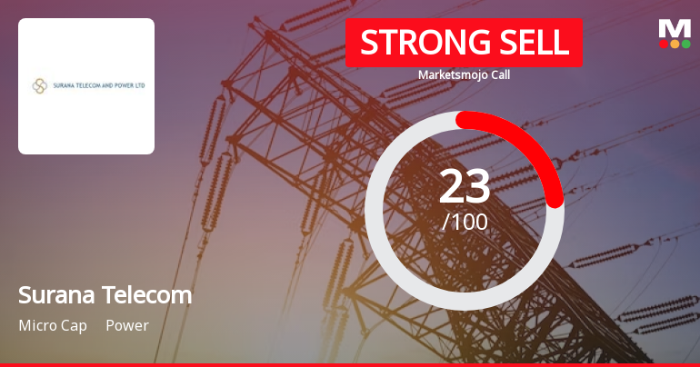 2026-04-15 10:10:34Surana Telecom and Power Ltd is rated Strong Sell by MarketsMOJO. This rating was last updated on 29 December 2025. However, the analysis and financial metrics discussed below reflect the company’s current position as of 15 April 2026, providing investors with the latest insights into the stock’s fundamentals, valuation, financial trends, and technical outlook.