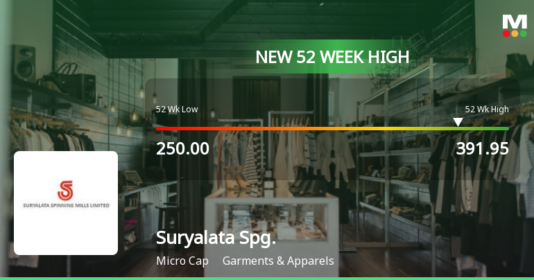 Suryalata Spinning Mills Ltd Hits New 52-Week High at Rs.391.95