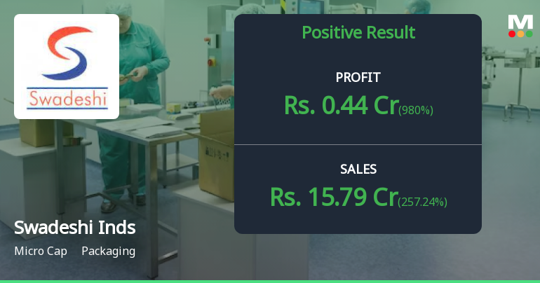 2026-02-10 09:48:28Swadeshi Industries & Leasing Ltd., a micro-cap packaging company with a market capitalisation of ₹140.00 crores, reported a dramatic revenue surge in Q3 FY26, yet profitability concerns and extreme valuation multiples continue to cloud the investment narrative. The stock, trading at ₹136.25, rallied 4.93% on February 10 following the quarterly results, though it remains 16.92% below its 52-week high of ₹164.00.