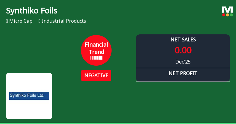 2026-02-13 10:10:57Synthiko Foils Limited, a micro-cap aluminium foils manufacturer with a market capitalisation of ₹3,096.00 crores, reported deeply troubling Q3 FY26 results that underscore a severe operational crisis. The company posted a consolidated net loss of ₹1.21 crores for the quarter ended December 2025, representing a staggering deterioration from a modest ₹0.03 crore profit in the year-ago quarter. More alarmingly, the company reported zero net sales during Q3 FY26, suggesting a complete halt in commercial operations.