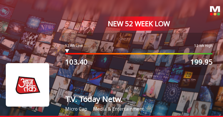 2026-03-16 11:17:29T.V. Today Network Ltd’s shares declined to a fresh 52-week low of Rs.103.4 on 16 Mar 2026, marking a significant downturn amid continued underperformance relative to its sector and benchmark indices.