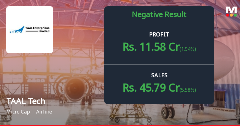 TAAL Tech Ltd's latest financial results for Q3 FY26 reveal a company facing notable operational challenges despite achieving modest year-on-year revenue growth. The net sales for the quarter amounted to ₹45.79 crores, reflecting a sequential decline of 6.23% from the previous quarter, although it did show a year-on-year improvement of 5.58%. This indicates a break in the sequential growth momentum that had been observed in the prior two quarters. The net profit for the quarter was reported at ₹11.58 crores, which represents a significant quarter-on-quarter decline of 18.85%, while year-on-year growth was marginal at 1.94%. The operating margin, a critical indicator of profitability, fell to 24.44%, marking the lowest level in the past eight quarters and indicating a compression of 661 basis points sequentially. This decline in margins raises concerns about the sustainability of the company's business mode...
