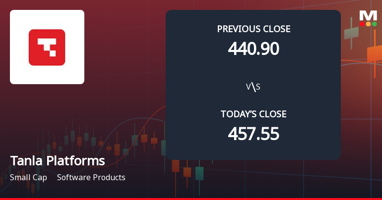 2026-03-02 13:31:45Tanla Platforms Ltd witnessed a sharp gap down at market open on 2 Mar 2026, reflecting heightened market concerns following recent performance trends and technical indicators. The stock opened at Rs 428.8, down 6.28% from its previous close, signalling a weak start amid broader sector underperformance.