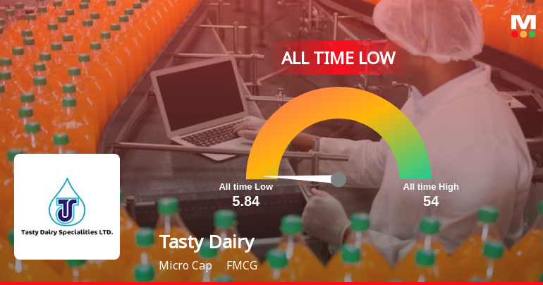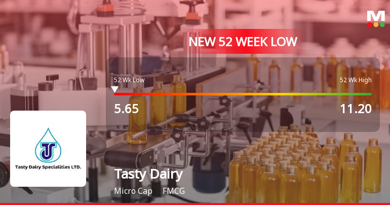 2026-03-11 15:50:37Tasty Dairy Specialities Ltd, a company operating in the FMCG sector, has reached a new 52-week and all-time low of Rs.6 per share as of 11 Mar 2026. This marks a significant decline in the stock price, reflecting ongoing challenges faced by the company amid a broader market downturn.