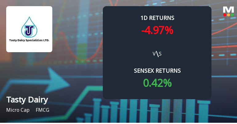 Tasty Dairy’s share price has been under pressure, with the stock losing 5.48% over the past three consecutive days. Despite a flat one-week return of 0.00%, the stock has significantly lagged behind the broader market indices over longer periods. Over the past month, the stock has declined by 17.37%, while the Sensex has only marginally dipped by 0.23%. More strikingly, the year-to-date performance shows a steep fall of 40.52% for Tasty Dairy, contrasting sharply with the Sensex’s gain of 8.12%. Over the last year, the stock has plummeted by 47.85%, whereas the Sensex has risen by 5.36%. This trend extends over three and five years, with Tasty Dairy’s returns at -65.84% and -74.73% respectively, compared to the Sensex’s robust gains ...