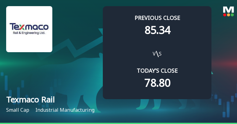 For the fifth consecutive session, Texmaco Rail & Engineering Ltd closed lower, hitting a fresh 52-week low of Rs 80.45 on 30 Mar 2026. This marks a significant decline of 9.14% over the last three days, underscoring persistent selling pressure despite a broader market that has shown some resilience.