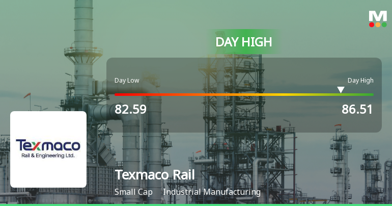 The Sensex advanced 2.7% on 1 Apr 2026, yet Texmaco Rail & Engineering Ltd outpaced the broader market with an 8.81% gain, reaching an intraday high of Rs 85.85. This 6.22-percentage-point outperformance over the Railways sector’s 4.39% rise signals a distinctly stock-specific rally rather than a mere market tailwind.