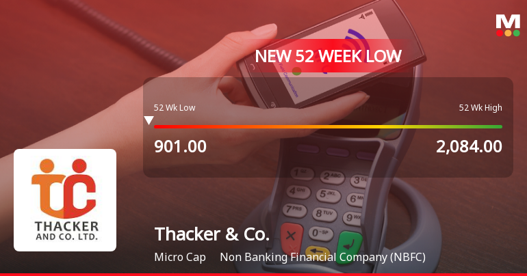 "title": "Thacker & Company Ltd Falls to 52-Week Low of Rs.900 Amidst Continued Downtrend",