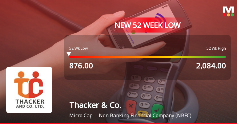 "title": "Thacker & Company Ltd Falls to 52-Week Low of Rs.876 Amidst Market Downturn",