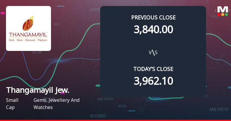 "description": "The Sensex climbed 2.28% on 25 Mar 2026, yet Thangamayil Jewellery Ltd outpaced the market with a robust 7.76% gain, reaching an intraday high of Rs 3561.95. This 2.27 percentage-point outperformance over its sector peers in Diamond & Gold Jewellery, which rose 4.85%, signals a distinctly stock-specific momentum shift."