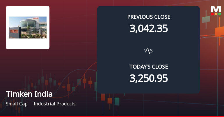 2026-02-05 09:52:34Timken India Ltd., the country's leading manufacturer of anti-friction bearings and mechanical power transmission products, reported a concerning Q3 FY26 performance with net profit plunging 41.71% quarter-on-quarter to ₹54.56 crores from ₹93.60 crores in Q2 FY26. The sharp decline in profitability, despite relatively stable revenue of ₹779.67 crores, has triggered investor concerns about margin sustainability and operational efficiency. The stock reacted negatively, falling 6.44% to ₹3,041.45 on February 05, 2026, as the market digested the disappointing results from the ₹22,877 crore market capitalisation company.